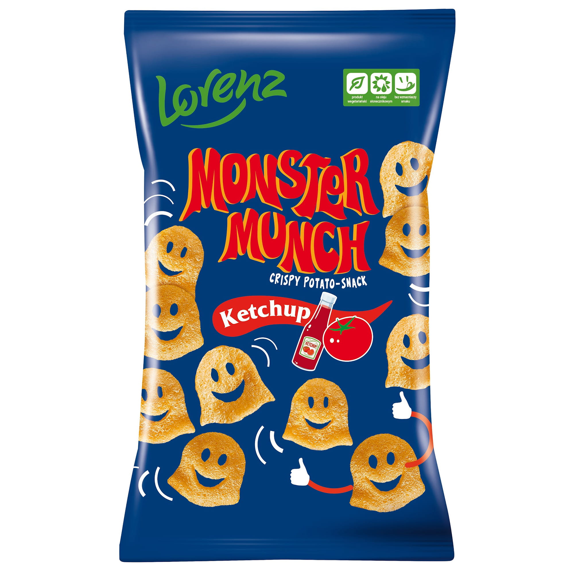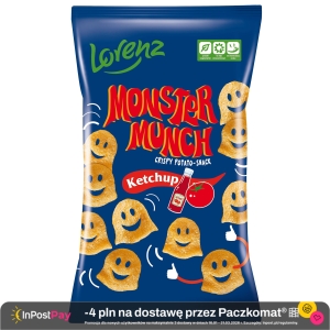 Chrupki ziemniaczane o smaku ketchupowym. Monster Munch to unikalne chrupki od zawsze w kształcie duszka, uwielbiane przez małych i dużych. Duszki nie zawierają konserwantów ani wzmacniaczy smaku i są wegetariańskie. Poczuj ducha rodziny z chrupkami Monster Munch i spraw, aby wspólne rodzinne chwile były strasznie przyjemne.