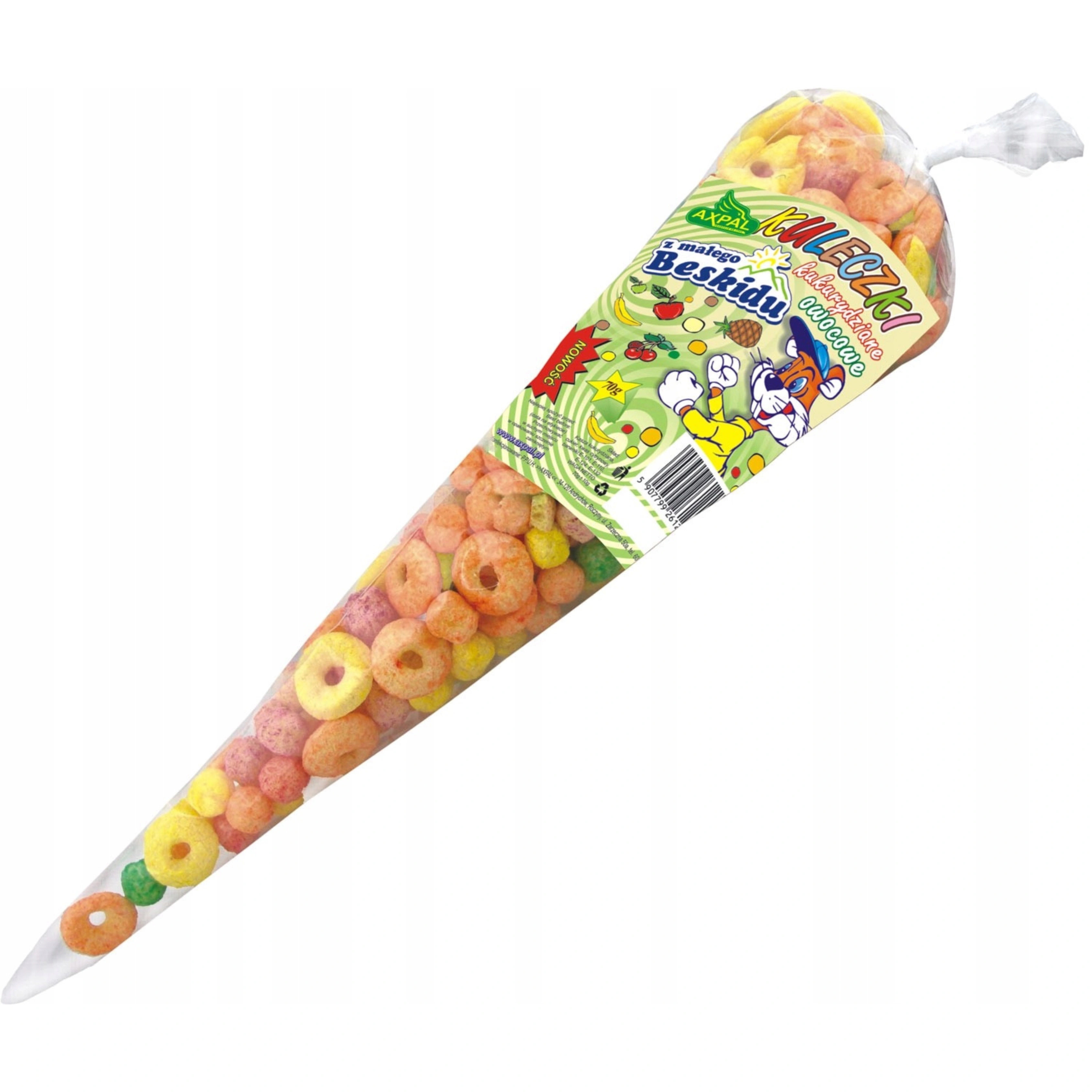 KULECZKI pyszne chrupki kukurydziane o smaku owocowym wyprodukowane przez polską firmę AXPAL.