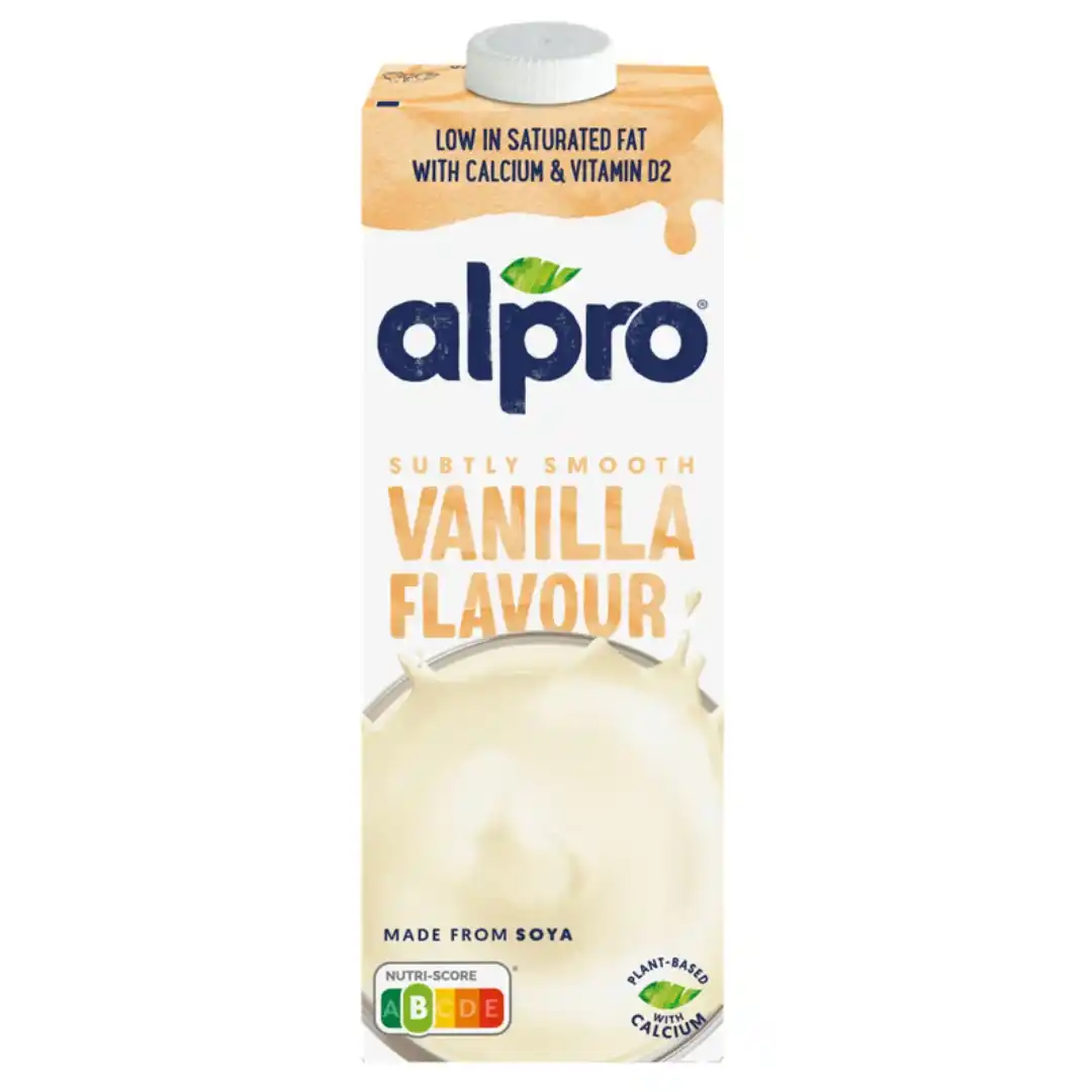 Napój sojowy o smaku waniliowym z wapniem i witaminami. Przepysznie waniliowy smak Bogaty w białko roślinne Źródło wapnia i witamin B2, B12, D 100 % roślinny Naturalnie bez laktozy, bezglutenowy Soja wolna od modyfikacji genetycznych Alpro Napój Sojowy o smaku waniliowym produkowany jest w 100 % na bazie roślin i nie zawiera laktozy ani glutenu. To doskonałe źródło białka roślinnego, wapnia oraz witamin: B2, B12 i D. Napój Alpro powstaje z soi wolnej od modyfikacji genetycznych. To doskonała, roślinna alternatywa dla mleka o przepysznie waniliowym smaku, która sprawdzi się zarówno samodzielnie, jak i jako dodatek do musli, płatków czy koktajli. Alpro. Roślinnie, zawsze pysznie!