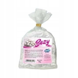 Apetitki Bezy 90g Bezy są słodkie, ale lekkie. Idealnie sprawdzą się jako mały, przyjemny dodatek do kawy lub herbaty. Bezy Apetitki mają postać małych, ozdobnych rozetek, dlatego pięknie prezentują się jako dekoracja ciast, lodów, kremów oraz innych deserów. Informacje dla alergików: