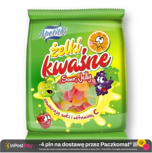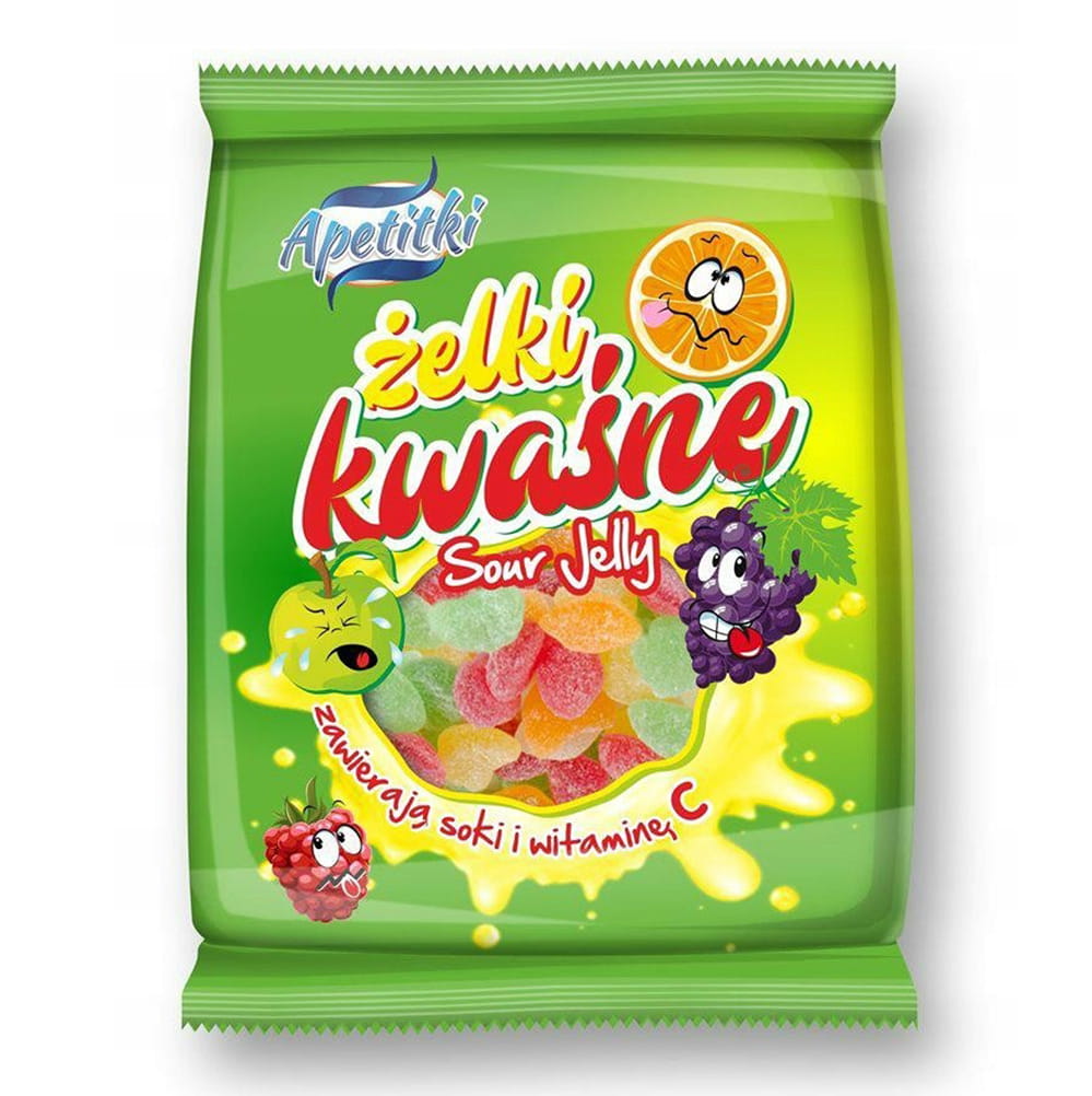 Apetitki Żelki kwaśne Żelki kwaśne o smaku owocowym z sokami owocowymi i witaminą C. Słodka przekąska na każdą okazję.