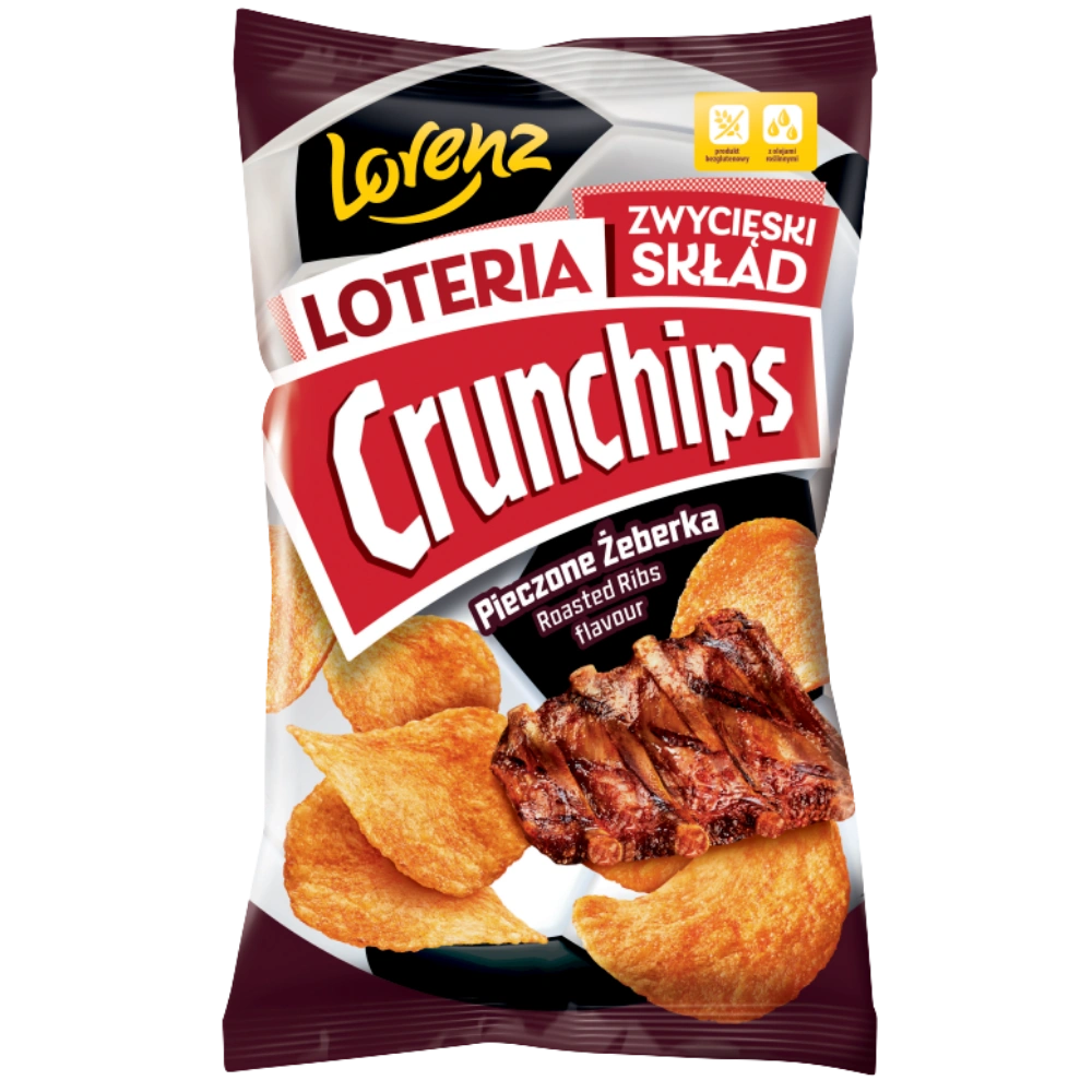 Chipsy ziemniaczane o smaku pieczonego mięsa. Crunchips to zdecydowanie najbardziej intensywna i imprezowa przekąska! Najlepsza opcja na każdą okazję, niezależnie od tego czy ostro balujesz czy chillujesz ze znajomymi. Produkowane z wyselekcjonowanych ziemniaków, wysokiej jakości olejów i aromatycznych przypraw, bez dodatku konserwantów i bez glutenu. Jest Crunchips jest impreza