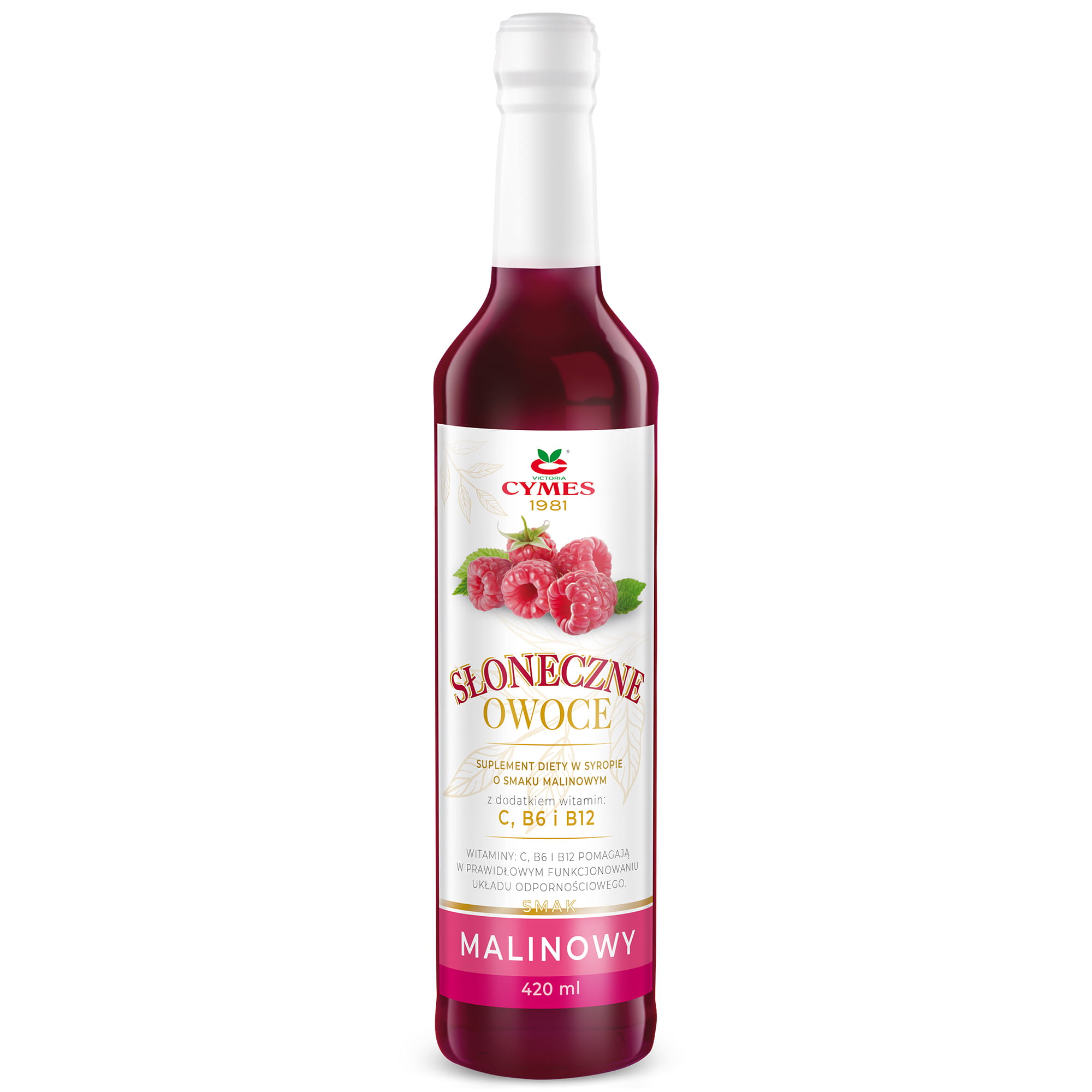 Suplement diety w syropie o smaku malinowym z dodatkiem witamin: C, B6, B12