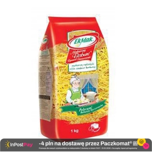 Eko Mak Makaron Babuni nitka cienka 11 1kg Makarony Babuni to najwyższej jakości wyroby, które, swoim wyśmienitym i niepowtarzalnym smakiem trafiają do coraz liczniejszego grona smakoszy. Ich produkcja oparta jest o tradycyjną metodę wytwarzania z udziałem starannie dobranych surowców, tj. jaja i odpowiednie gatunki mąk.