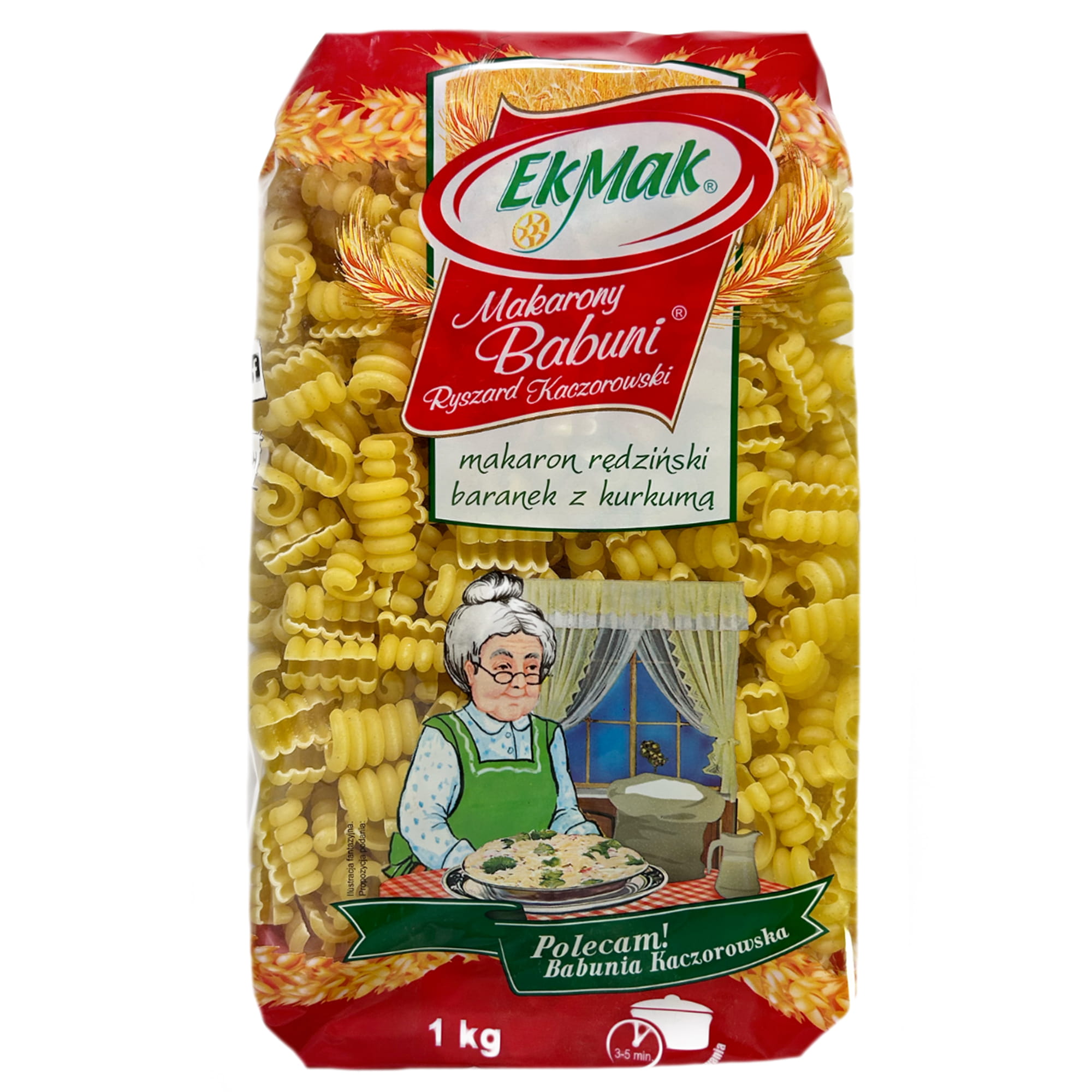 Eko Mak Makarony Babuni baranek 1kg Makarony Babuni to najwyższej jakości wyroby, które, swoim wyśmienitym i niepowtarzalnym smakiem trafiają do coraz liczniejszego grona smakoszy. Ich produkcja oparta jest o tradycyjną metodę wytwarzania z udziałem starannie dobranych surowców, tj. jaja i odpowiednie gatunki mąk.