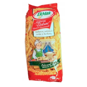 Eko Mak Makarony Babuni rurka 1kg Makarony Babuni to najwyższej jakości wyroby, które, swoim wyśmienitym i niepowtarzalnym smakiem trafiają do coraz liczniejszego grona smakoszy. Ich produkcja oparta jest o tradycyjną metodę wytwarzania z udziałem starannie dobranych surowców, tj. jaja i odpowiednie gatunki mąk.
