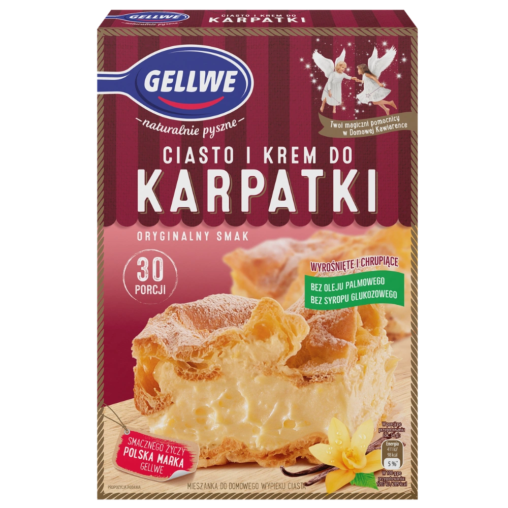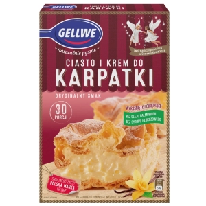 Karpatka ciasto + krem Mieszanka do gotowego wypieku ciasta i przygotowania kremu. Opakowanie zawiera 140 g mieszanki do przygotowania ciasta oraz 200 g mieszanki do sporządzenia kremu.