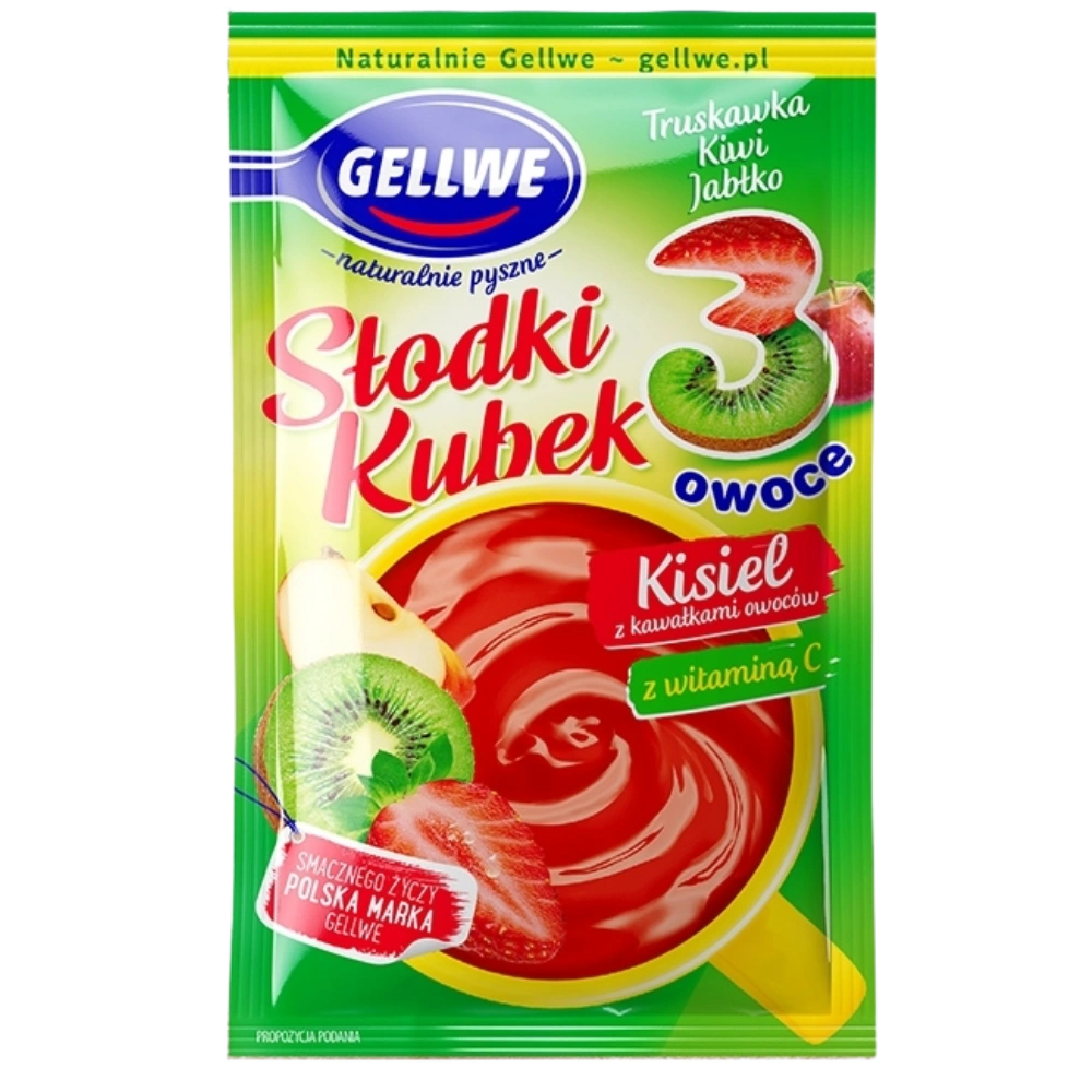 Gellwe Słodki Kubek 3 owoce Kisiel truskawka kiwi jabłko 30 g