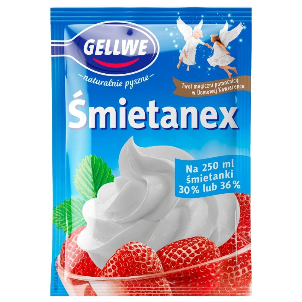 Gellwe Śmietanex To niezwykły dodatek do śmietany zachowujący jej idealną konsystencję . Dzięki temu wszystkie desery dłużej zachowają wspaniały wygląd oraz smak. Gellwe - naturalnie pyszne Smacznego życzy polska marka Gellwe