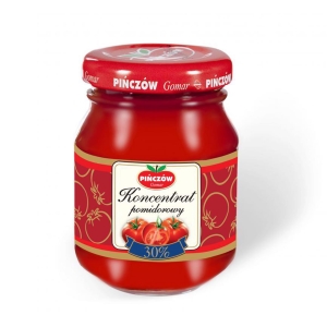 Gomar Pińczów koncentrat pomidorowy 30% 80g Powstały na bazie starannie opracowanych receptur, bez dodatku substancji konserwujących. Do ich produkcji użyte zostały najwyższej jakości składniki i przyprawy, dzięk temu są tak wyjątkowo smaczne. Koncentrat pomidorowy 30%, zawartość ekstraktu 28-30%..