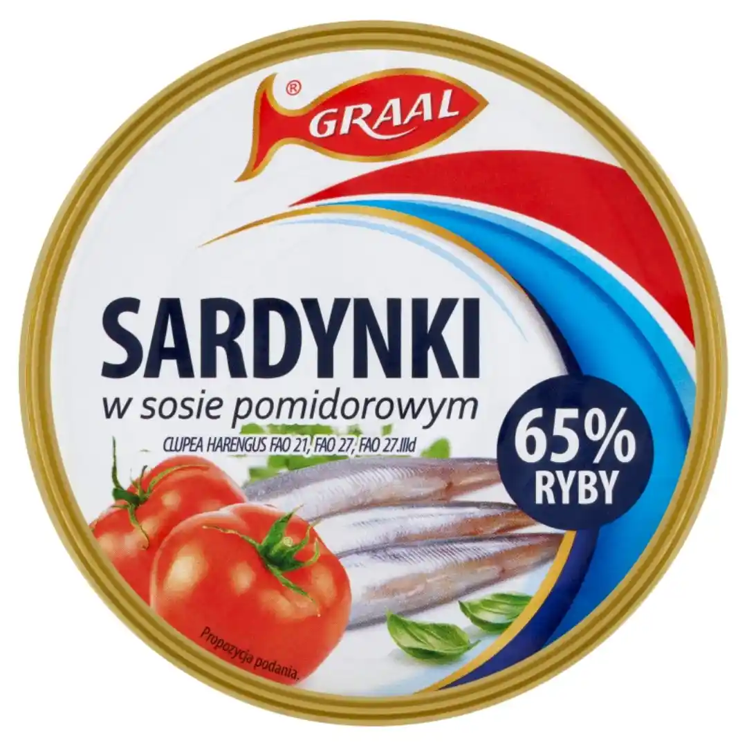 Sardynka w sosie pomidorowym. Konserwa rybna sterylizowana.