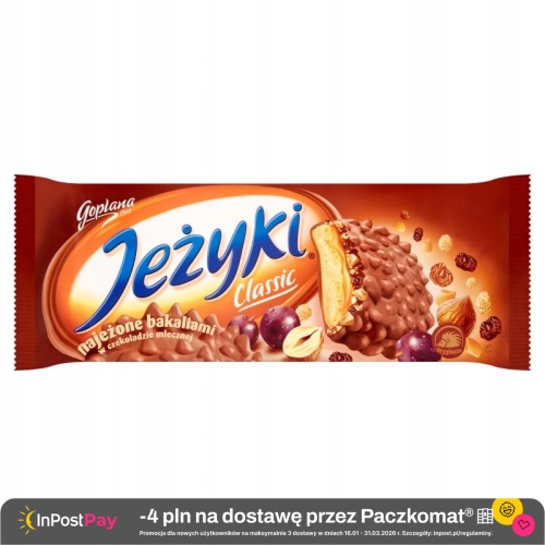 Herbatniki z karmelem 32,3%, orzechami laskowymi, rodzynkami i chrupkami ryżowymi w czekoladzie mlecznej. Pyszne ciasteczko z karmelem, orzechami laskowymi i chrupkami ryżowymi oblane mleczną czekoladą Polecamy również: w czekoladzie mlecznej Jeżyki Kokos Jeżyki Cafe Jeżyki o smaku Advocat Jeżyki Cherry w czekoladzie deserowej Jeżyki Dark Cocoa Jeżyki Dark Cherry