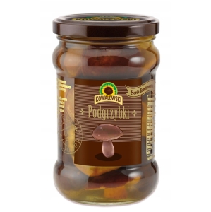 Kowalewski Podgrzybki marynowane Podgrzybki marynowane to sposób, aby cieszyć się tym przysmakiem jeszcze długo po sezonie. Marynowanie pozwala na zachowanie smaku i wzbogacenie go o różne przyprawy, jak: sól czy cebula. Grzyby marynowane są doskonałe do mięs, drobiu, sałatek czy ryby.