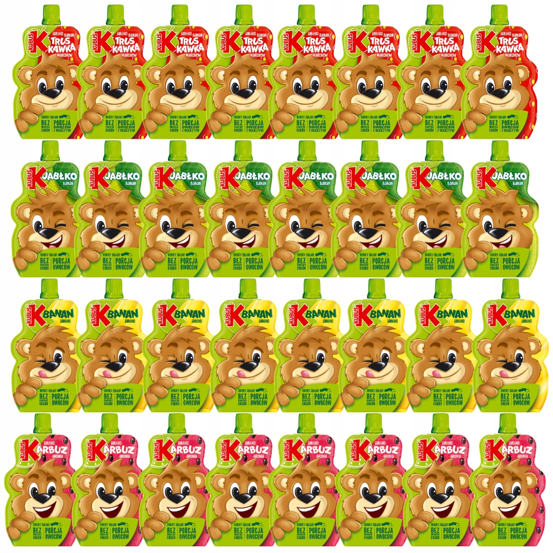 Mix 4 smaków Kubuś Mus 100%. Zestaw zawiera: