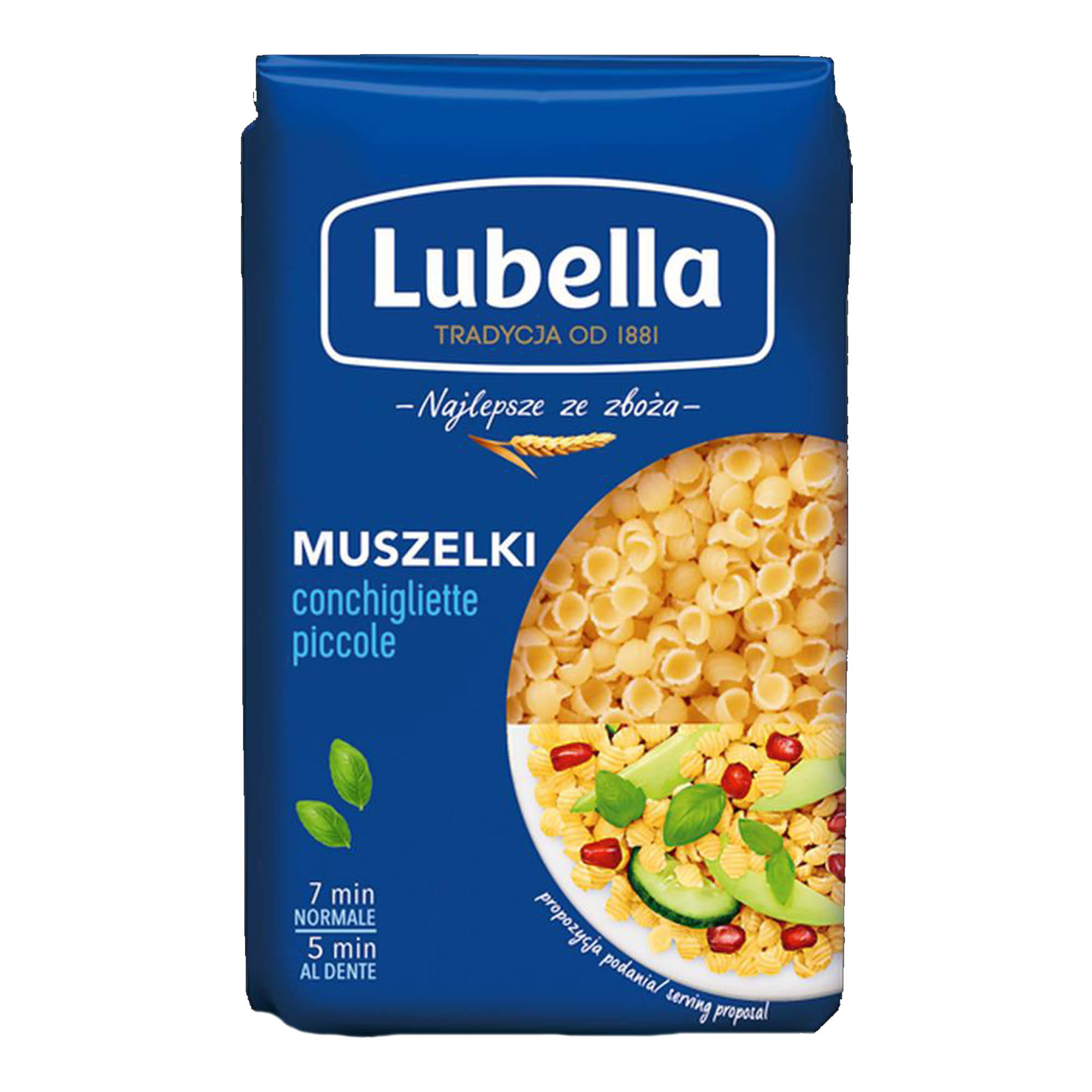 LUBELLA Makaron muszelki 400 g Makaron Lubella wytwarzany jest z wysokiej jakości pszenicy. Specjalny proces mielenia pozwala otrzymać z niej mąkę, dzięki której makaron jest odpowiednio twardy i doskonale sprężysty. Odpowiedni proces suszenia sprawia, że makaron Lubella nie skleja się i zachowuje naturalny zapach oraz złocisty...Makaron