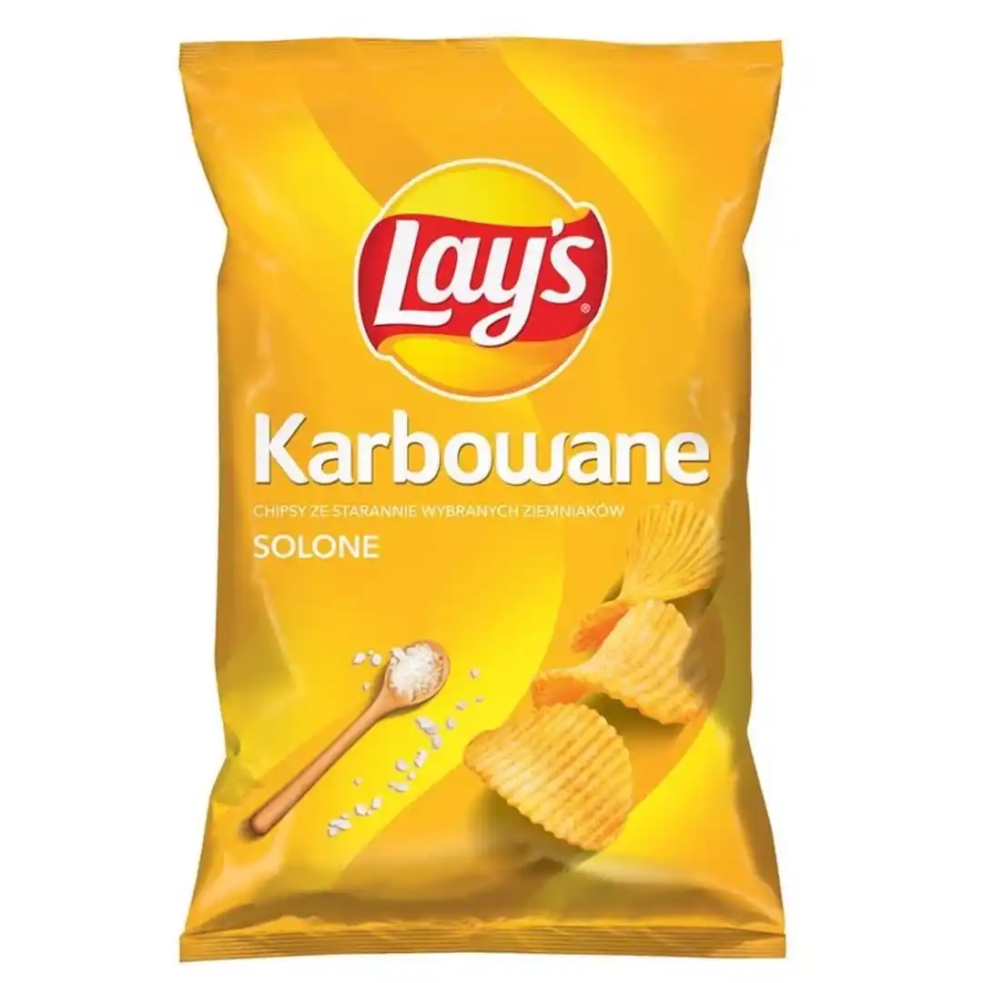 Chipsy ziemniaczane karbowane solone. Chipsy Lay’s Max karbowane solone to coś więcej niż zwykłe płaskie chipsy. Dzięki temu, że są grubsze, bardziej chrupią i mniej się kruszą. Mocno karbowana struktura chipsów pozwala cieszyć się jeszcze intensywniejszym smakiem przy każdym kęsie. Chipsy Lay’s solone karbowane Max są gotowe do zjedzenia prosto z paczki, idealne na każdą okazję, gdy najdzie Cię ochota na coś smakowitego i chrupiącego. Solone Lay's karbowane Max to doskonałe połączenie klasycznego smaku z niesamowitą chrupkością. Chipsy Lay’s Max sprawdzą się doskonale podczas spotkań ze znajomymi, imprez, wieczorów filmowych czy jako szybka przekąska w ciągu dnia. Wypróbuj karbowane chipsy solone od Lay’s – Max pyszne, Max aromatyczne, Max chrupiące – zawsze pod ręką, aby zaspokoić Twoje pragnienie chrupania! Dostępne w poręcznym opakowaniu 120 g, chipsy ziemniaczane Lay’s Max karbowane solone to doskonały wybór dla każdego miłośnika klasycznych smaków. Sięgnij po chipsy Lay's karbowane Max i ciesz się niezapomnianymi doznaniami smakowymi! Spróbuj innych Lay's Max Lay's Max Karbowane Lay's Max Deep-Cut Lay's Max Strong