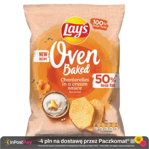 Pieczone formowane chipsy ziemniaczane o smaku kurek w śmietanowym sosie. To nie są zwykłe chipsy, to Lay’s Oven Baked o smaku kurek w śmietanie! Zanurz się w czystej przyjemności chrupania z Lay’s Oven Baked, które pieczemy, zamiast je smażyć, dlatego mają aż o 50% mniej tłuszczu niż klasyczne smażone chipsy ziemniaczane Lay’s, a jednocześnie cieszą pełnią niewiarygodnego smaku Lay’s. Chipsy Lay's Oven Baked o smaku kurek w śmietanie to doskonała przekąska dla miłośników subtelnych, ale zachwycających połączeń smakowych. Chipsy Oven Baked o smaku kurek w śmietanie są dostępne w poręcznym opakowaniu 110 g, co sprawia, że jest to idealna przekąska do zjedzenia wraz z bliskimi. Odkryj niezwykłe smaki Lay’s Oven Baked podczas spotkań z przyjaciółmi, przeżywania sportowych emocji, wieczorów filmowych lub kiedy masz ochotę na wyrafinowaną przekąskę. Ciesz się wyjątkowym smakiem i mniejszą zawartością tłuszczu – wybierz Lay's Oven Baked o smaku kurek w śmietanie. To smaczna opcja, która doda radości każdej chwili. Lay’s Oven Baked – pieczone do perfekcji, zachwycające wyjątkowym smakiem!