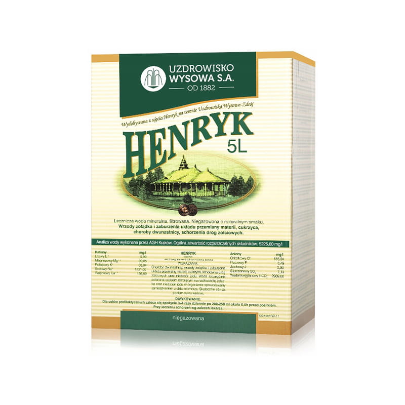 Lecznicza woda mineralna "Henryk" szczególnie polecana osobom cierpiącym na nadkwasotę i niedobór jodu. Przynosi ulgę również w chorobie wrzodowej żołądka i dwunastnicy, zaburzeniach przemiany materii oraz schorzeniach dróg żółciowych. Działanie leczniczej wody mineralnej "Henryk" jest zbliżone do działania naszego "Franciszka", dlatego również wskazaniem do jej stosowania są: choroba wrzodowa żołądka i dwunastnicy, zaburzenia przemiany materii oraz schorzenia dróg żółciowych.