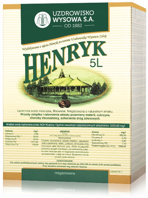 Lecznicza woda mineralna "Henryk" szczególnie polecana osobom cierpiącym na nadkwasotę i niedobór jodu. Przynosi ulgę również w chorobie wrzodowej żołądka i dwunastnicy, zaburzeniach przemiany materii oraz schorzeniach dróg żółciowych. Działanie leczniczej wody mineralnej "Henryk" jest zbliżone do działania naszego "Franciszka", dlatego również wskazaniem do jej stosowania są: choroba wrzodowa żołądka i dwunastnicy, zaburzenia przemiany materii oraz schorzenia dróg żółciowych.