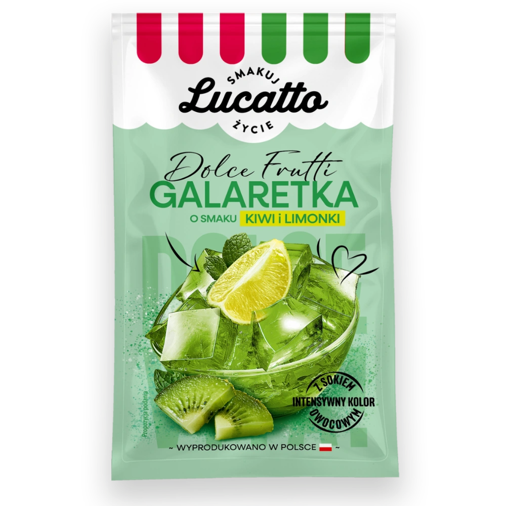Galaretka smak kiwi & limonka 70 g Orzeźwiająca kompozycja soczystego kiwi i wyrazistej limonki. Lekki, świeży smak z delikatną kwaskowatością sprawia, że galaretka doskonale sprawdzi się jako orzeźwiający deser w upalne popołudnie lub dodatek do owocowych kompozycji.