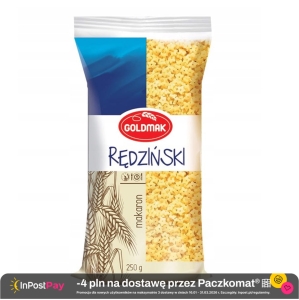 Makaron Rędziński Goldmak mini gwiazdki 250g GOLDMAK to firma rodzinna i liczący się na polskim rynku producent makaronów, z nowoczesnymi i wydajnymi liniami produkcyjnymi, współpracujący ze sprawdzonymi, polskimi dostawcami wysokiej jakości mąk oraz jaj. Oferujemy Państwu zarówno makarony walcowane jak i tłoczone. Do produkcji krajanek, czyli makaronów walcowanych, używamy jaj oraz wysokiej jakości mąki makaronowej, co daje gwarancję dobrego smaku. Makarony tłoczone to z kolei szeroki wybór kształtów wykorzystywanych jako dodatek do dań głównych, zup i sałatek. Sprzedajemy nasze produkty na terenie całego kraju, jak również za granicą.
