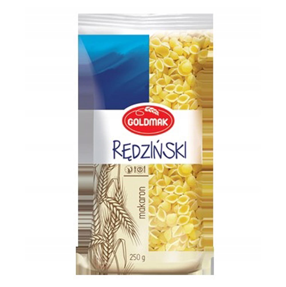 Makaron Rędziński Goldmak mini muszelka 250g GOLDMAK to firma rodzinna i liczący się na polskim rynku producent makaronów, z nowoczesnymi i wydajnymi liniami produkcyjnymi, współpracujący ze sprawdzonymi, polskimi dostawcami wysokiej jakości mąk oraz jaj. Oferujemy Państwu zarówno makarony walcowane jak i tłoczone. Do produkcji krajanek, czyli makaronów walcowanych, używamy jaj oraz wysokiej jakości mąki makaronowej, co daje gwarancję dobrego smaku. Makarony tłoczone to z kolei szeroki wybór kształtów wykorzystywanych jako dodatek do dań głównych, zup i sałatek. Sprzedajemy nasze produkty na terenie całego kraju, jak również za granicą.