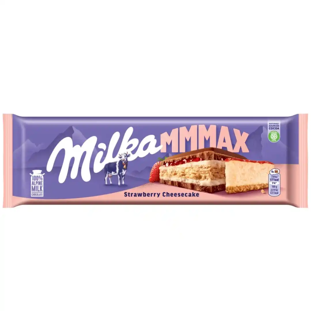 Milka Mmmax Strawberry Cheesecake to rozpływająca się w ustach czekoladowa przekąska. Herbatnik, nadzenie o smaku sernika, nadzienie truskawkowe w czekoladzie Milka z mleka alpejskiego połączone w jedno. Od ponad 100 lat inspirujemy chwile prawdziwej więzi między rodzinami, przyjaciółmi i nieznajomymi! Dlatego wszystkie produkty Milka zachęcają do wspólnego cieszenia i dzielenia się nimi.