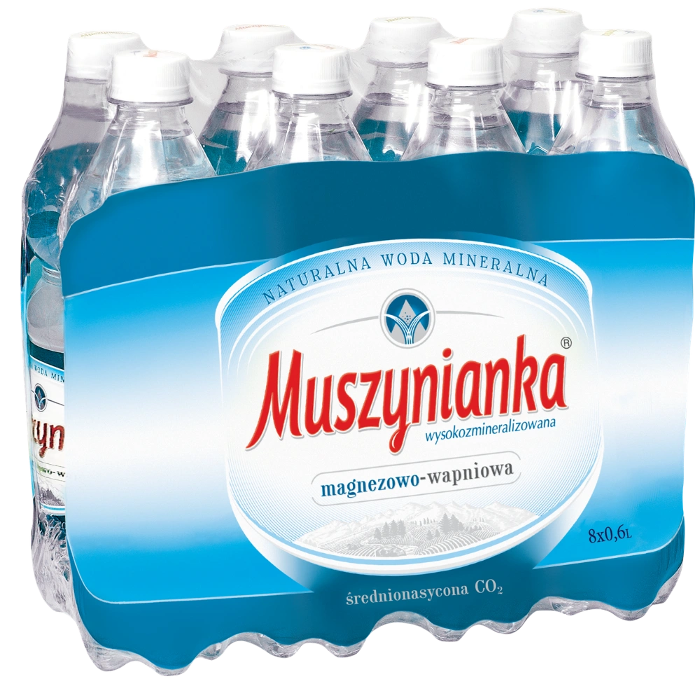 Muszynianka Plus Naturalna woda mineralna wysokozmineralizowana średnionasycona CO2 0,6 l x 8 sztuk