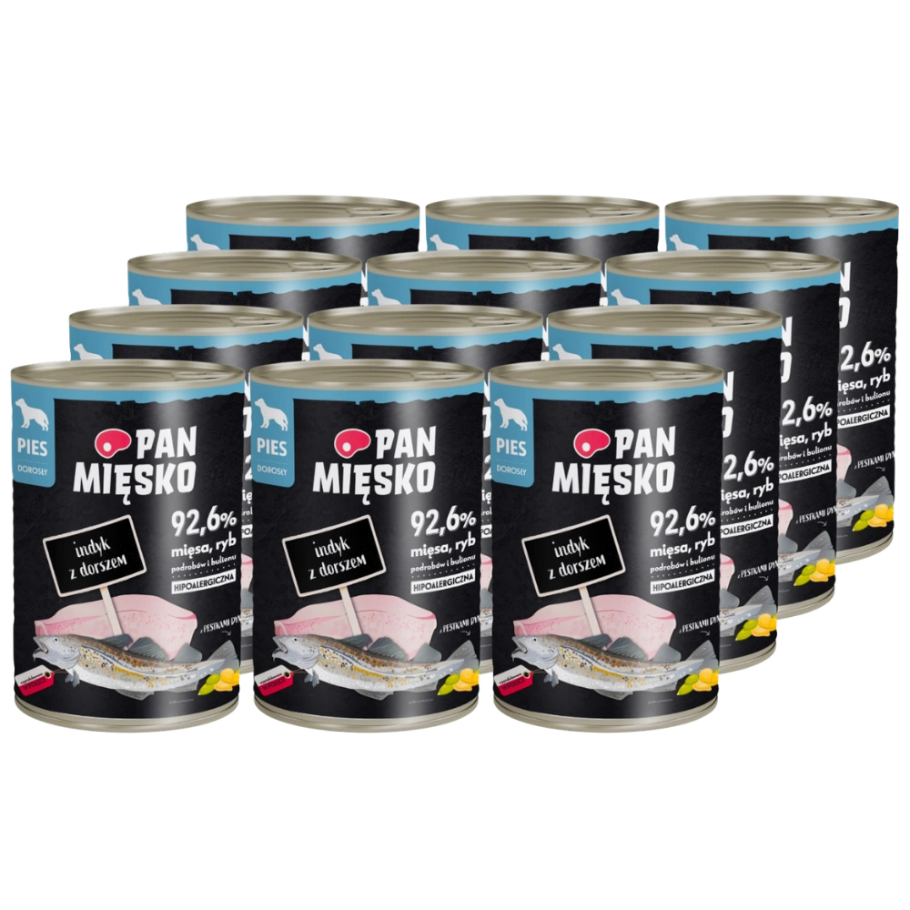 Pan Mięsko Karma mokra dla psa Indyk z dorszem 400g x 12 sztuk
