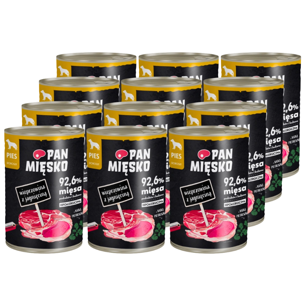 Pan Mięsko Karma mokra dla psa Wieprzowina z jagnięciną 400g x 12 sztuk