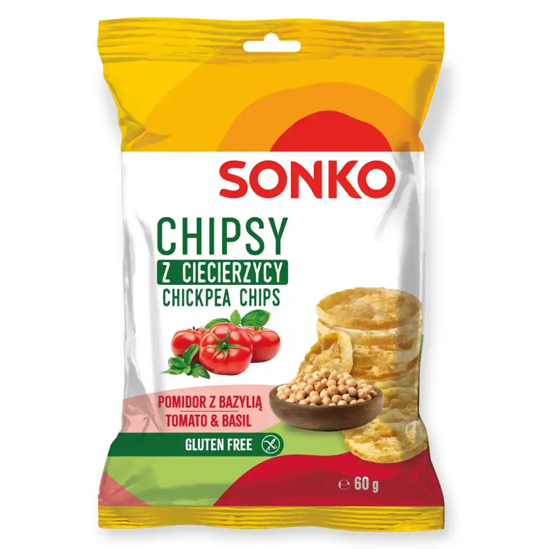 Sonko Chipsy z ciecierzycy o smaku pomidora z bazylią 60 g