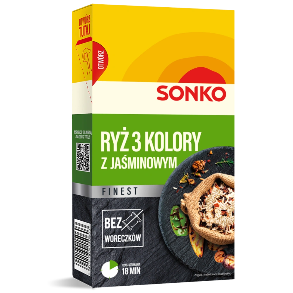 Sonko Finest stworzyliśmy z myślą o tych, którzy cenią naturalny smak, najwyższą jakość i świadome wybory. Nasz ryż pakowany jest luzem w kartoniku – bez plastikowych woreczków, bez zbędnych dodatków, bez mikroplastiku w żywności. To ekologiczne rozwiązanie, które wspiera redukcję odpadów i realnie zmniejsza ślad węglowy. Wybierając nasze opakowanie, wybierasz mniej plastiku, więcej natury. Ryż 3 kolory z jaśminowym to połączenie aromatycznych delikatnych ziaren ryżu jaśminowego z chrupkimi i wyrazistymi ziarnami ryżu czarnego i czerwonego. Taka mieszanka gwarantuje, ze każde danie zyska unikalny orientalny charakter i intrygujący wygląd. Porzuć kuchenne banały i wypróbuj czegoś naprawdę wyjątkowego!