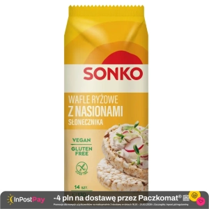 Wafle ryżowe z nasionami słonecznika od Sonko to smakowita opcja na pożywne śniadanie. Ziarna słonecznika posiadają orzechowy smak i wiele składników odżywczych. Świetnie komponują się z twarogiem lub wędlinami, a także jako pożywna przekąska solo – na górskie wyprawy czy na rodzinny piknik!