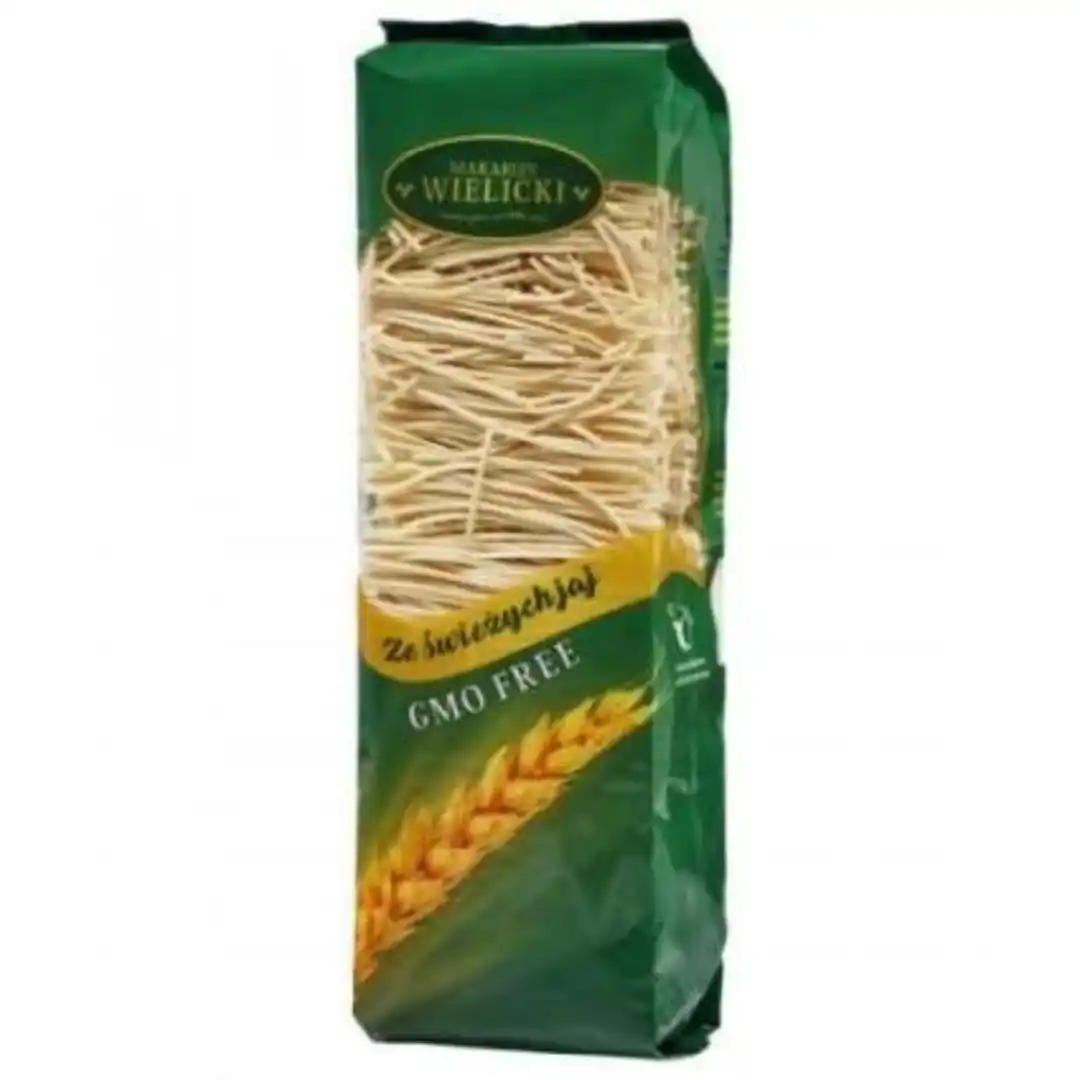 Makaron krajanka Makaron Wielicki to marka dla której najważniejszymi wartościami są jakość, tradycja i rodzina. Dlatego receptura naszego makaronu przekazywana jest z pokolenia na pokolenie. Makaron Wielicki produkowany jest z najlepszych gatunków mąki, świeżych jaj i bez dodatku substancji wzbogacających. Nasze produkty to najwyższej jakości składniki oraz odpowiedni proces produkcji.