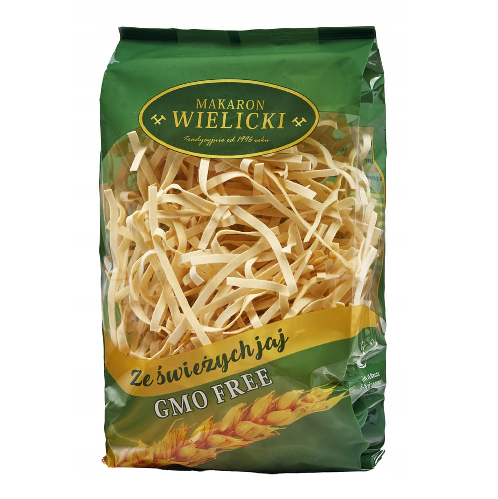 Makaron wstążka Makaron Wielicki to marka dla której najważniejszymi wartościami są jakość, tradycja i rodzina. Dlatego receptura naszego makaronu przekazywana jest z pokolenia na pokolenie. Makaron Wielicki produkowany jest z najlepszych gatunków mąki, świeżych jaj i bez dodatku substancji wzbogacających. Nasze produkty to najwyższej jakości składniki oraz odpowiedni proces produkcji.
