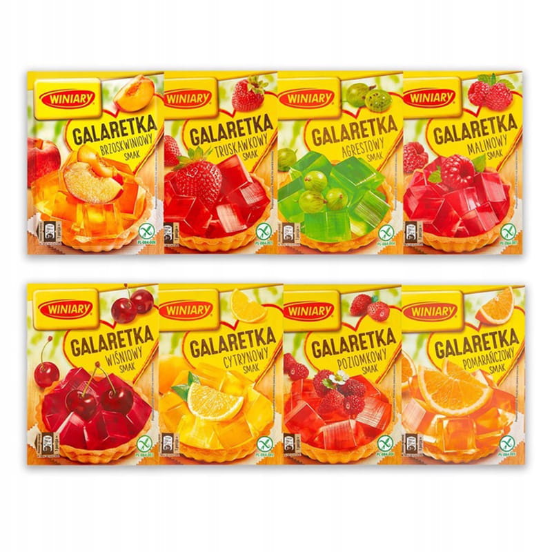 Winiary Galaretka Mix 8 smaków: brzoskwinia, truskawka, agrest, malina, wiśnia, cytryna, poziomka, pomarańcza