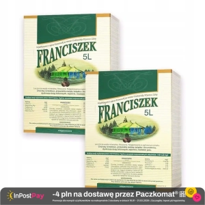 Lecznicza woda mineralna Franciszek 5l x 2 sztuki Przyspiesza trawienie, poprawia przemianę materii. Jako woda lecznicza polecany jest osobom cierpiącym na choroby wrzodowe, zgagę, przewlekłe nieżyty żołądka i dwunastnicy, schorzenia pęcherzyka żółciowego i dróg żółciowych oraz mających problemy z zaparciami. Stosowany do inhalacji pomaga w leczeniu przewlekłych stanów zapalnych górnych dróg oddechowych. W znaczny sposób łagodzi też objawy nadużycia alkoholu. Główną cechą mineralnej wody leczniczej Franciszek jest jej hipertoniczność, dzięki czemu ulega przyspieszeniu przechodzenie treści pokarmowej z żołądka do dwunastnicy, oraz nasila się wydzielanie soków trawiennych. Badania kliniczne wykazały, iż miesięczna kuracja wywołuje znamienny spadek wydzielania kwasu solnego w żołądku, co w znacznym stopniu łagodzi dolegliwości spowodowane chorobą wrzodową żołądka i dwunastnicy. Franciszek przynosi również znaczną ulgę w zaparciach. Systematyczne picie wody stymuluje zarówno wydzielanie żółci, jak i produkcję soku trzustkowego